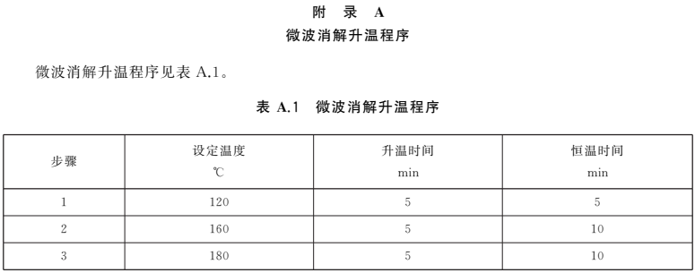 ——增加了微波消解升溫程序、石墨爐原子吸收光譜法和火焰原子吸收光譜法的儀器參考條件為附錄。