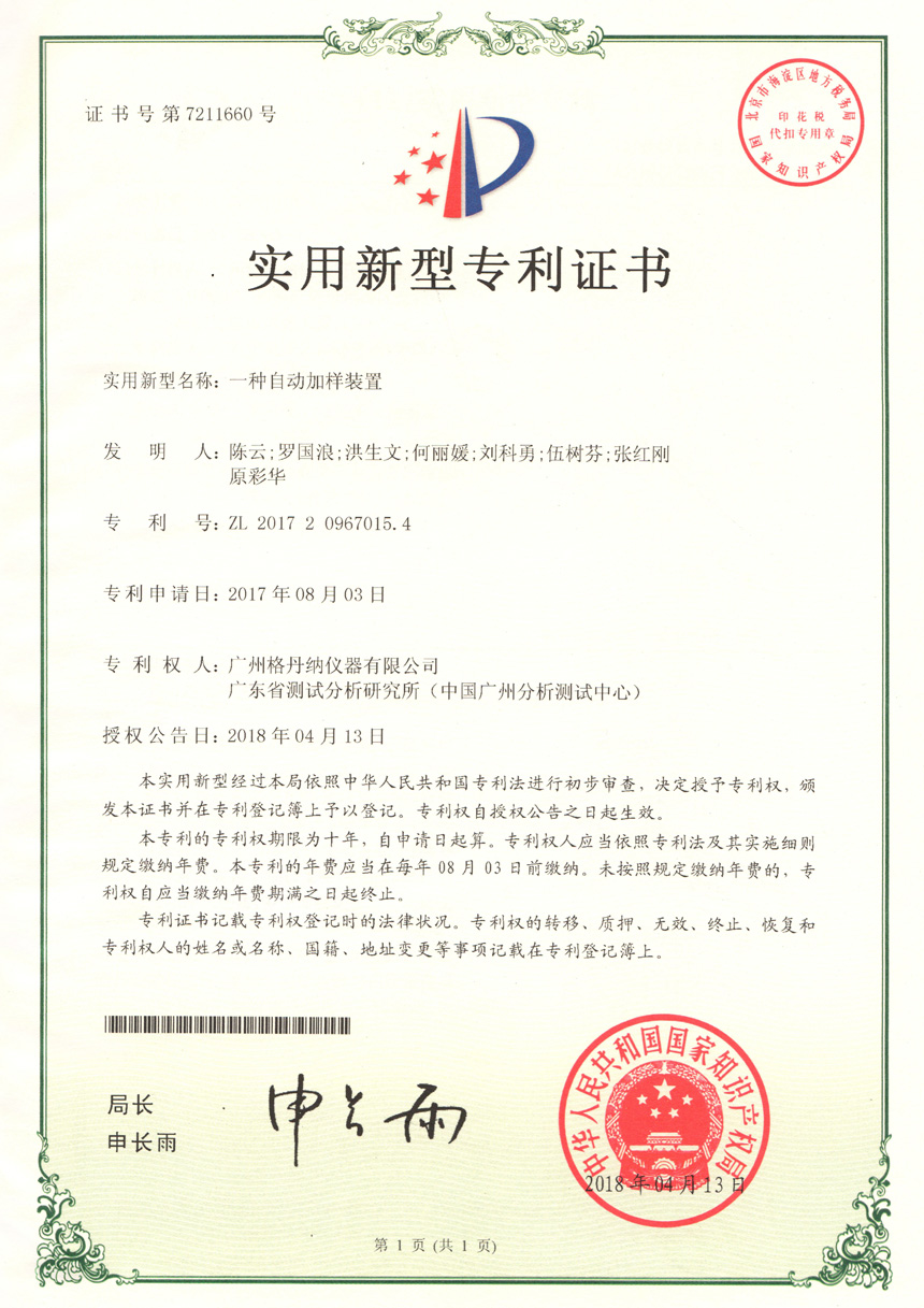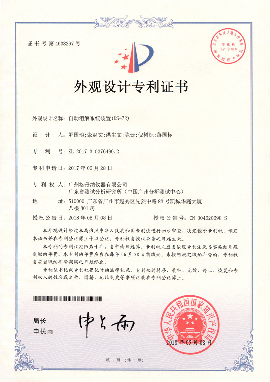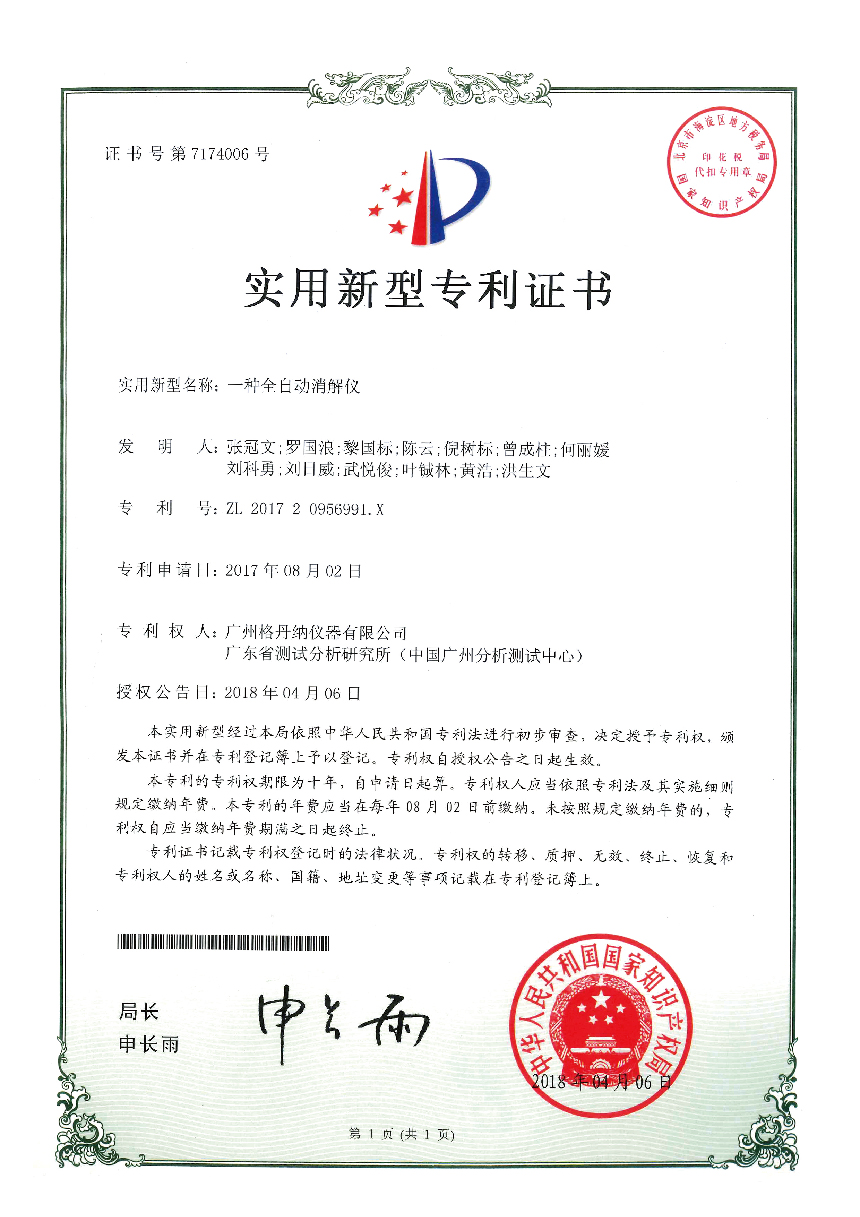• 一種全自動(dòng)消解儀-實(shí)用新型專利證書(shū)