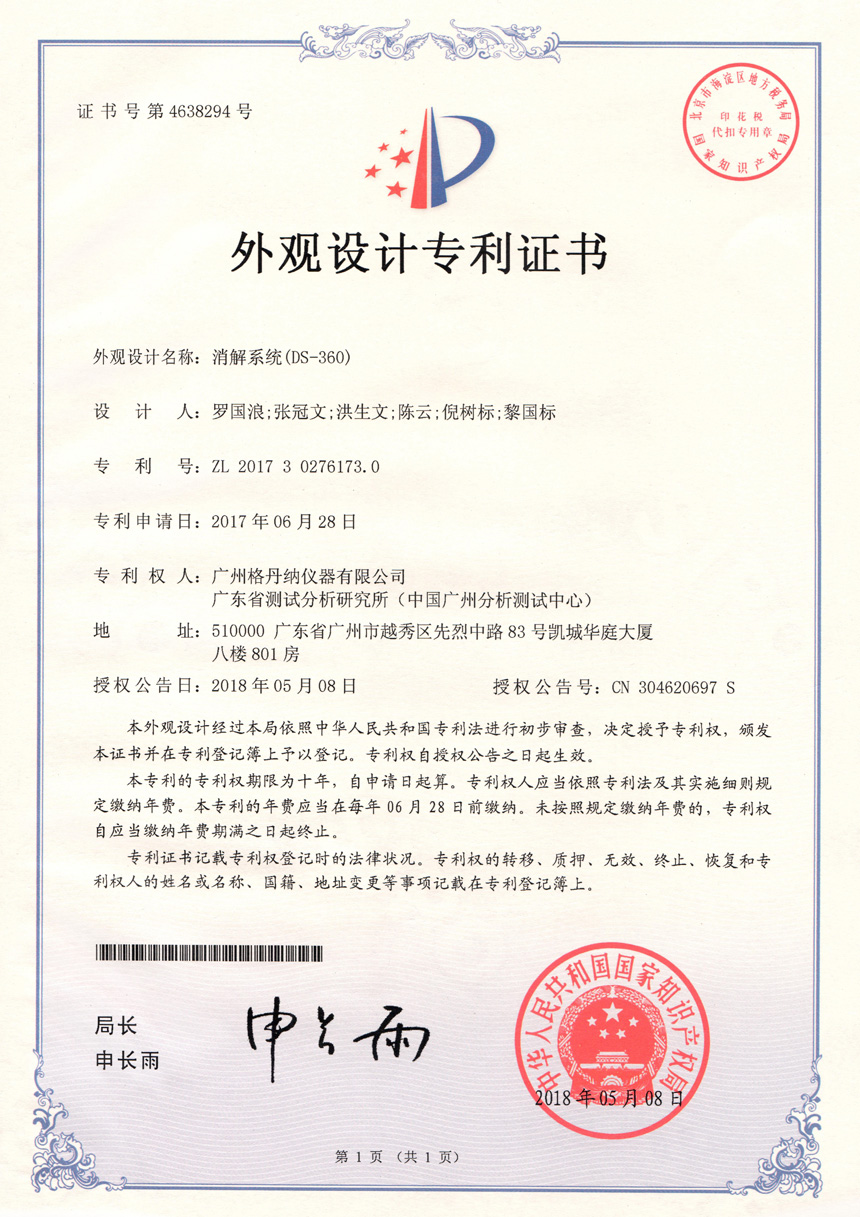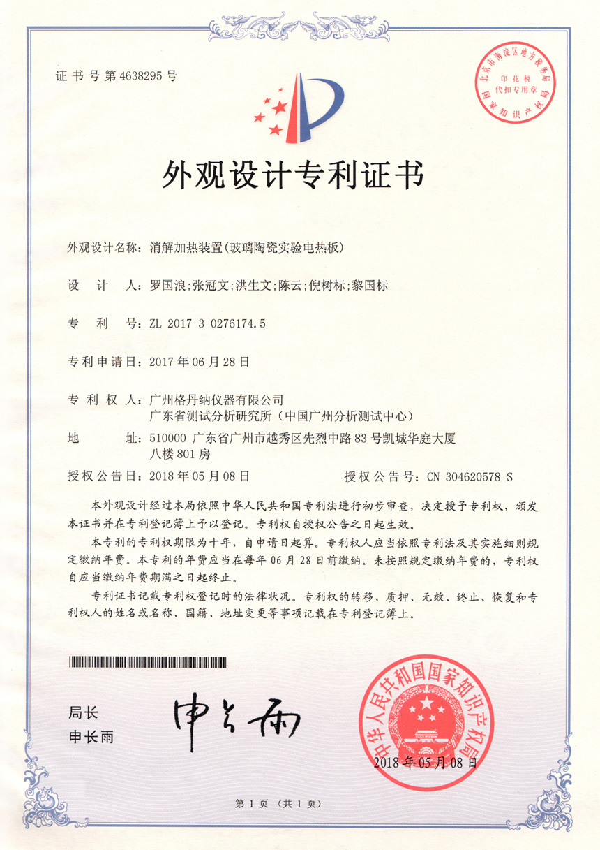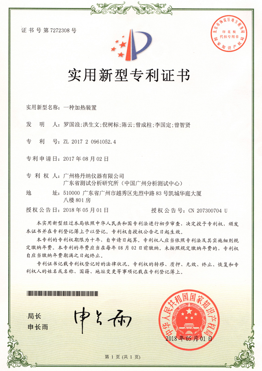 • 一種全自動(dòng)消解儀-實(shí)用新型專利證書(shū)