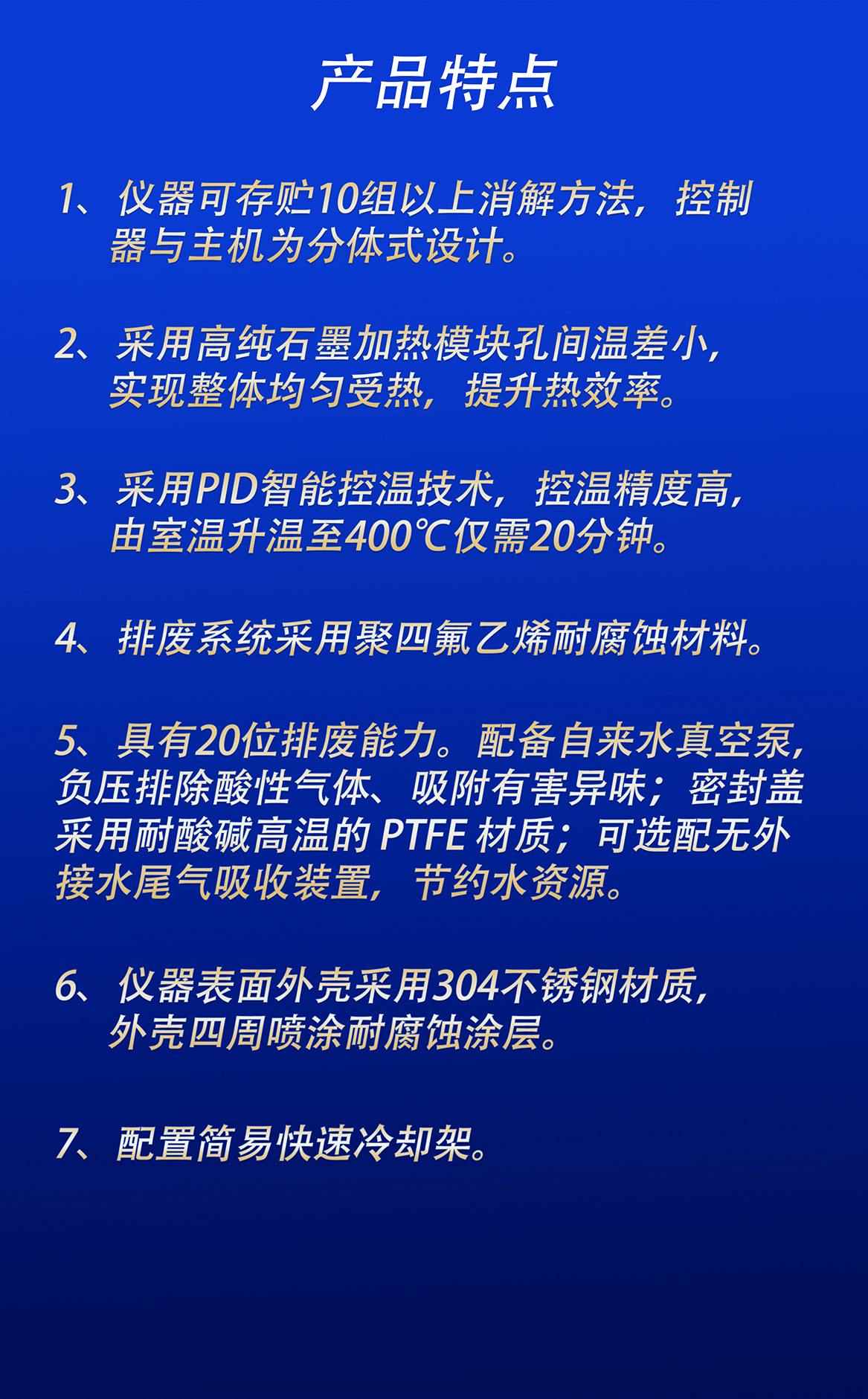 1、儀器可存貯10組以上消解方法,控制器與主機(jī)為分體式設(shè)計(jì)。