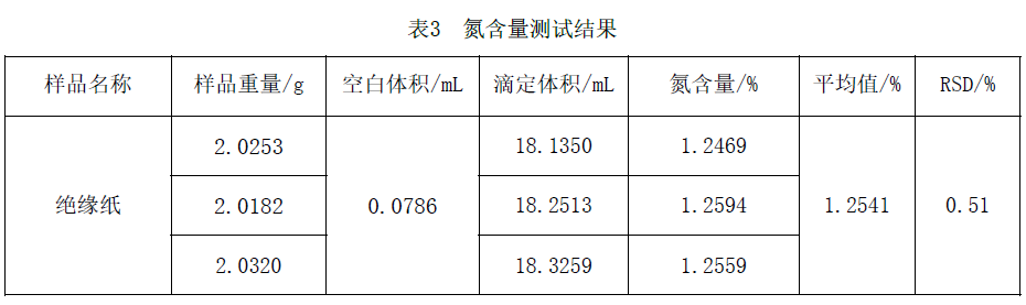 絕緣紙是電絕緣用紙的總稱,主要用于電纜、線圈等電器設備的絕緣材料,兼具良好絕緣性和機械強度。其包括電容器紙、電纜紙、電話紙等多種類型,可通過厚度、耐溫等級等參數(shù)適應不同電壓與環(huán)境需求,主要特性涵蓋介電強度、熱穩(wěn)定性及化學兼容性。本實驗采用凱氏定氮法對樣品進行分析,該方法具有普適性強(適用于多種有機含氮樣品)、經(jīng)典可靠、設備成本相對較低、可通過加標回收實驗驗證其準確性、空白值可控等特點,有助于精確測定樣品中的總氮/粗蛋白含量,為后續(xù)的氮含量計算提供可靠基礎。