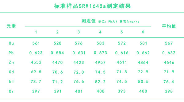 標(biāo)準(zhǔn)樣品SRM1648a測(cè)定結(jié)果