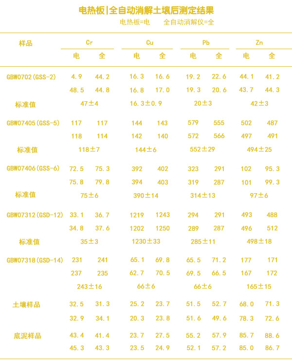 加熱板、全自動(dòng)消解土壤后測(cè)定結(jié)果