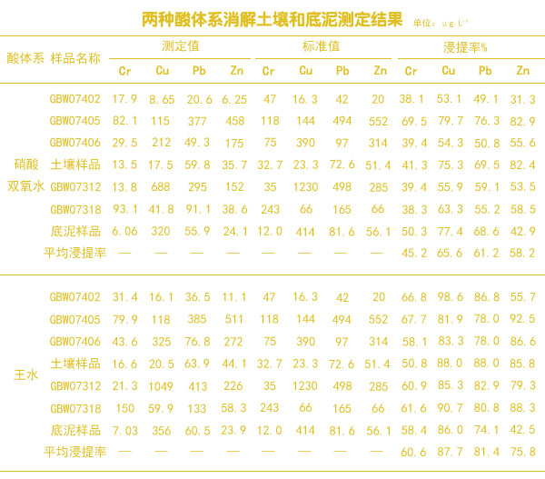 兩種酸體系消解土壤和底泥測(cè)定結(jié)果