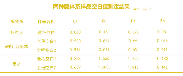 兩種酸體系樣品空白值測(cè)定結(jié)果