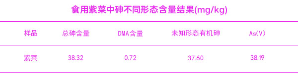 食用紫菜中砷不同形態(tài)含量的結果