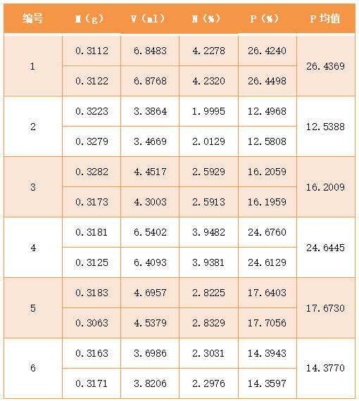 3)消解完成后,冷卻至室溫,用凱氏定氮儀進行蒸餾滴定,打印出檢測結果。同時做空白實驗。