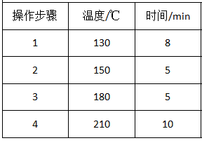 準(zhǔn)確稱取過100目篩的土壤樣品0.5000(±0.0002) g于消解管中,加入消解體系,搖勻,加蓋密封后放入智能石墨消解儀中,按照表1的儀器條件完成操作后,待溫度降到80 C以下時(shí),取出消解管,用去離子水轉(zhuǎn)移至50 mL容量瓶中定容,用原子吸收分光光度計(jì)測(cè)定。消解的工作條件見表1。
